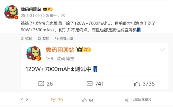 尽管该博主未明确透露这些技术将应用于哪些型号,但网友纷纷猜测120W快充+7000mAh电池组合可能会出现在iQOO15系列和Neo11系列中,而90W快充+7500mAh电池组合则可能与iQOOZ10Turbo系列相关。
